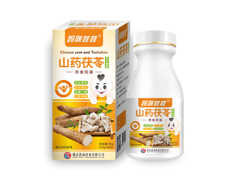 - 产品名称:山药茯苓压片糖果产品类型:压片糖果配料:山梨糖醇、山药、茯苓、薏苡仁、栀子、芡实、莲子、藿香、橘皮净含量:0.6g/片×80片食用方法:建议一天两到三[查看详情]
